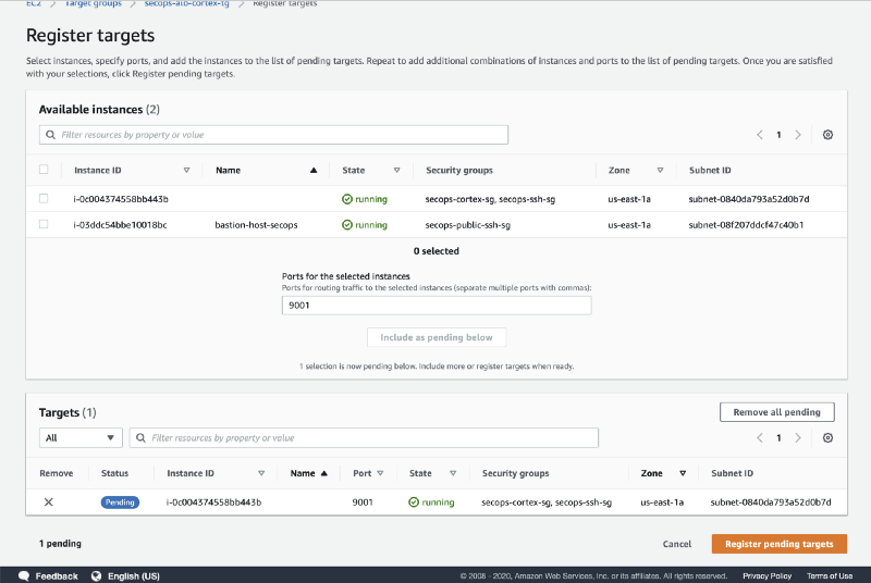 - Select your Cortex instance, click on Include as pending below and then click on Register pending targets