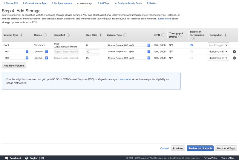 While the root filesystem is designed to be disposable, just like a container, both the Cortex database and Docker volumes are set to be persistent upon instance termination. Again, please refer to the Cortex AMI user guide for more information on these EBS volumes.