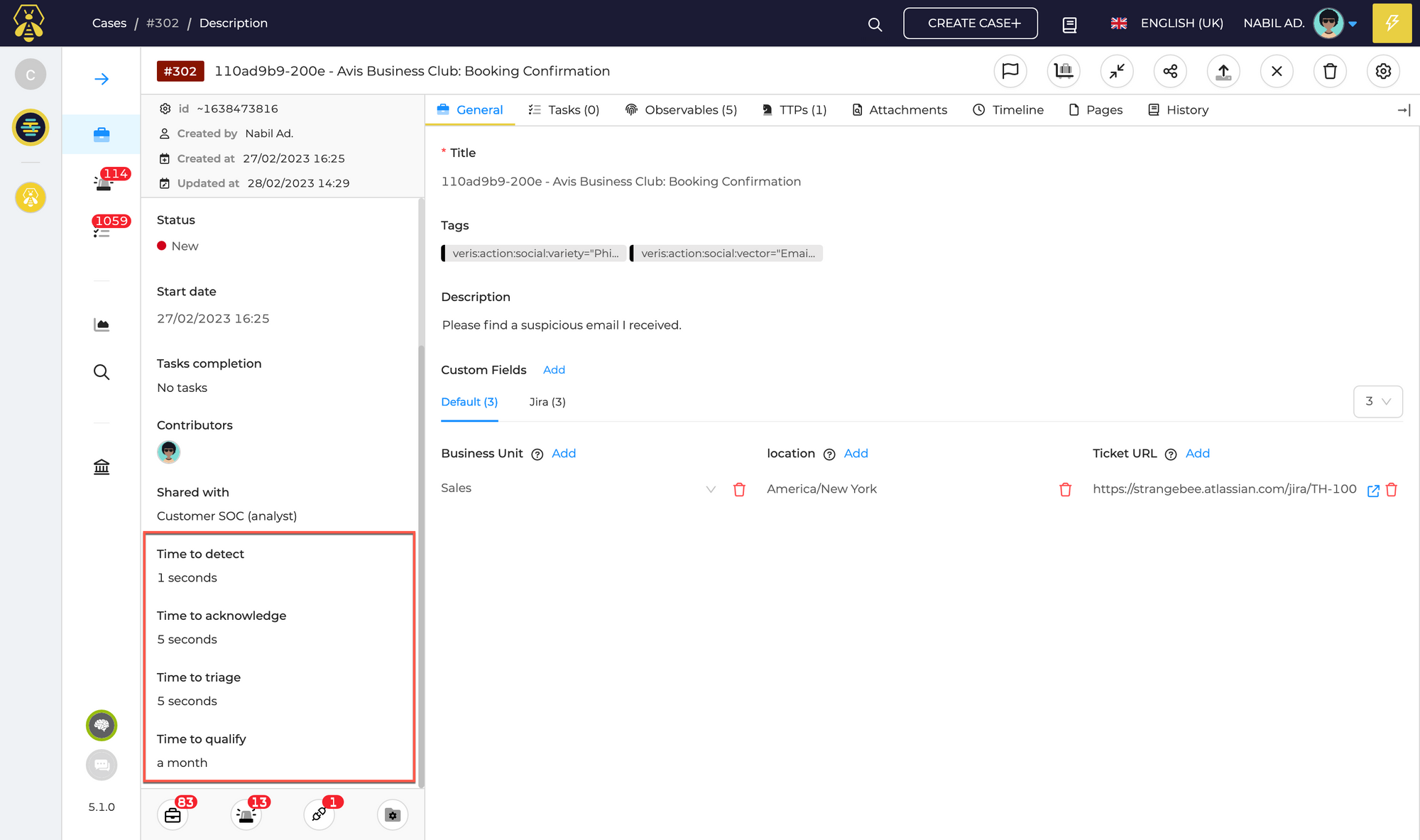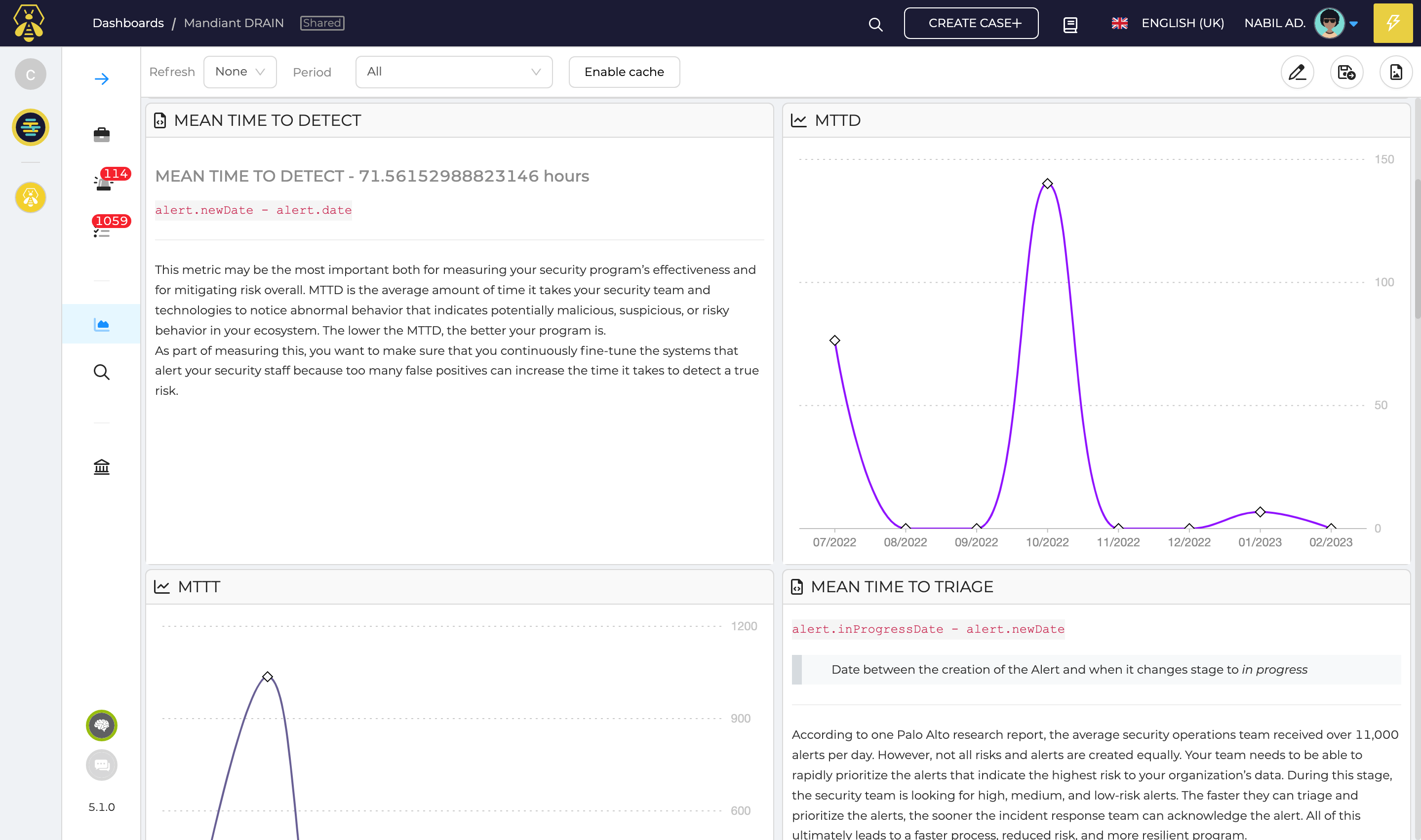 The improved reporting features introduced in TheHive 5.1 provide valuable insights into the time metrics of events and incidents, allowing you to track key performance indicators related to your security operations:
