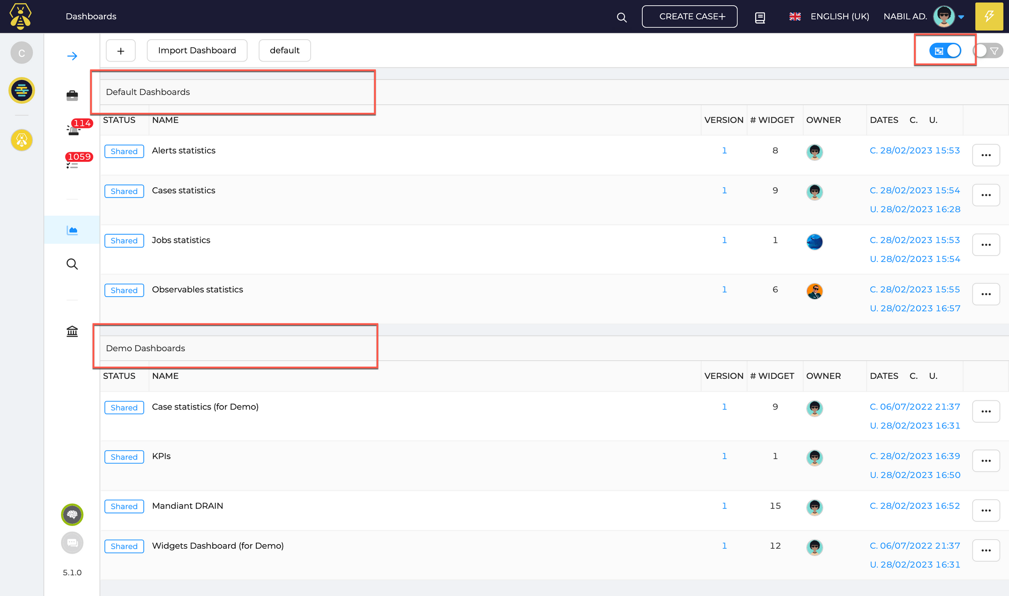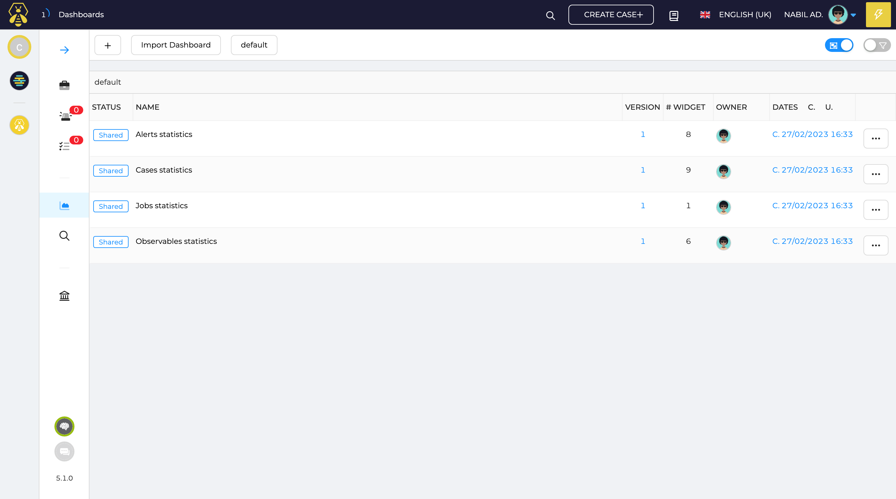 Default dashboards: Four default dashboards are now automatically created within each organization: Alert Statistics, Case Statistics, Observables Statistics and Job Statistics. They provide insightful metrics, right out-of-the-box!