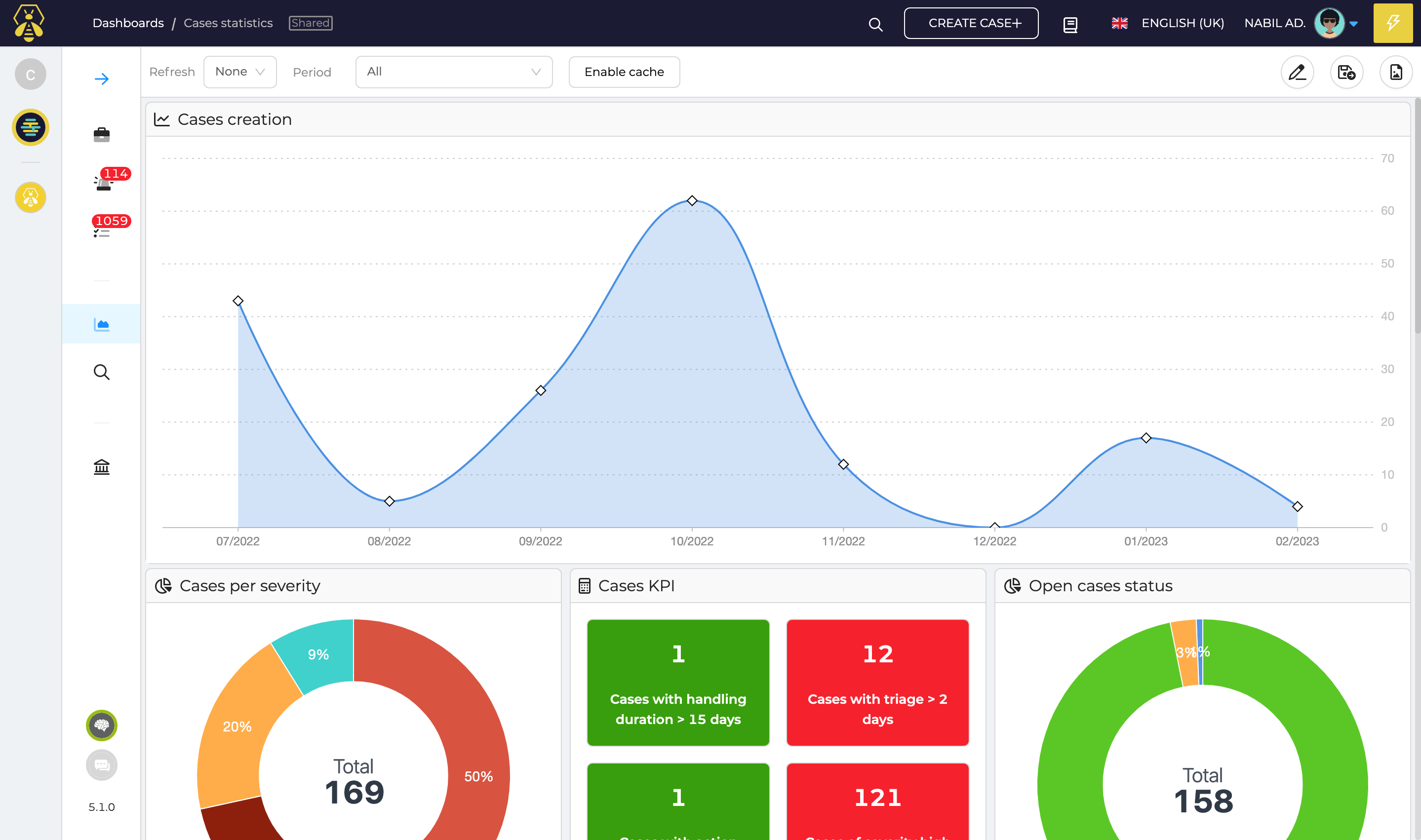 With the enhanced Dashboard capabilities in TheHive 5.1, you can now enjoy improved reporting functionalities.