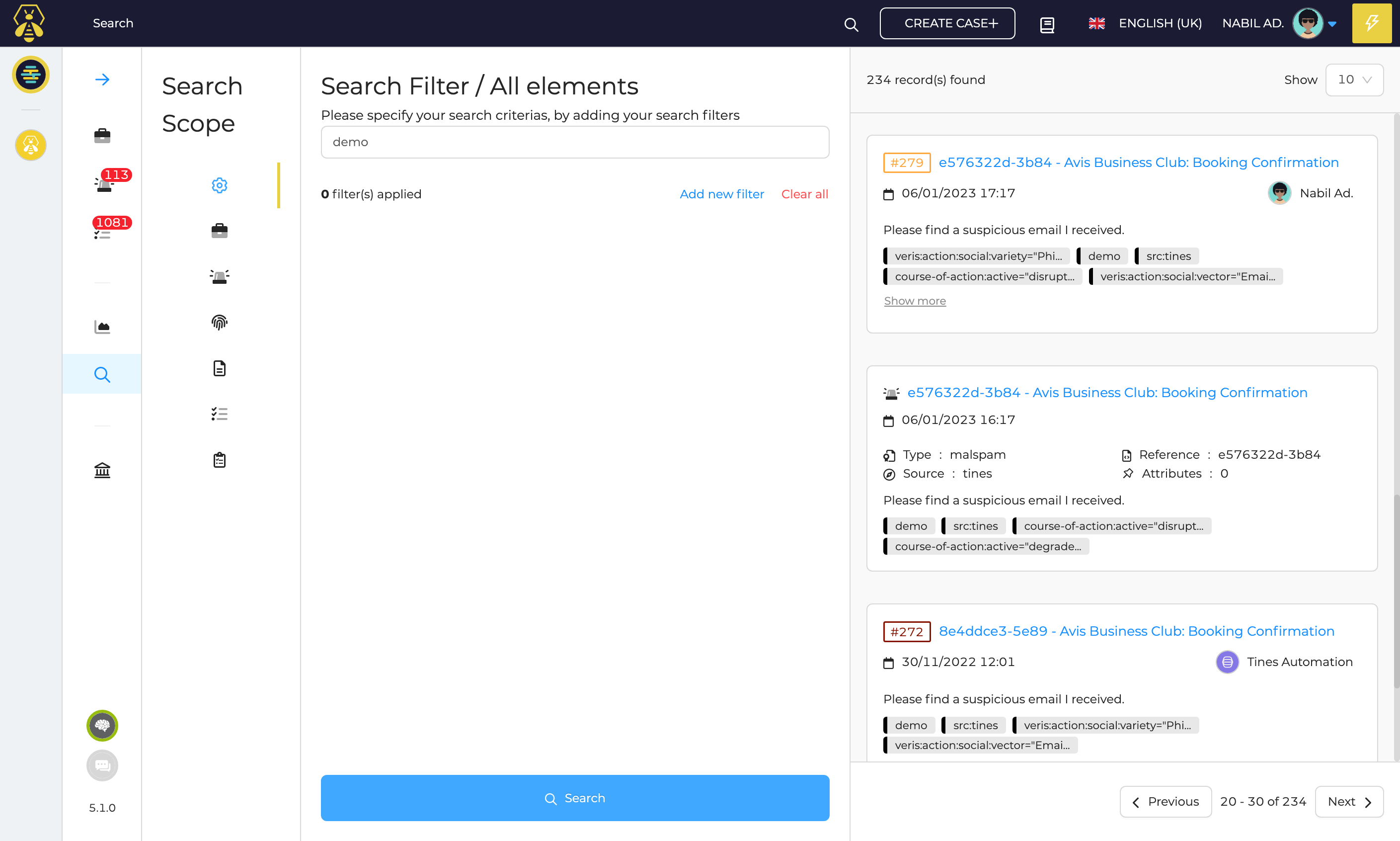 With TheHive 5.1, you can now enjoy a more powerful and efficient search engine. The search feature has been enhanced with a new “All elements” scope, which enables you to search across your entire organization’s data, all at once. This means you no longer need to restrict your searches to specific scopes, such as Cases, Alerts, or Observables. However, if you still wish to target some of your searches on them, that option remains available.