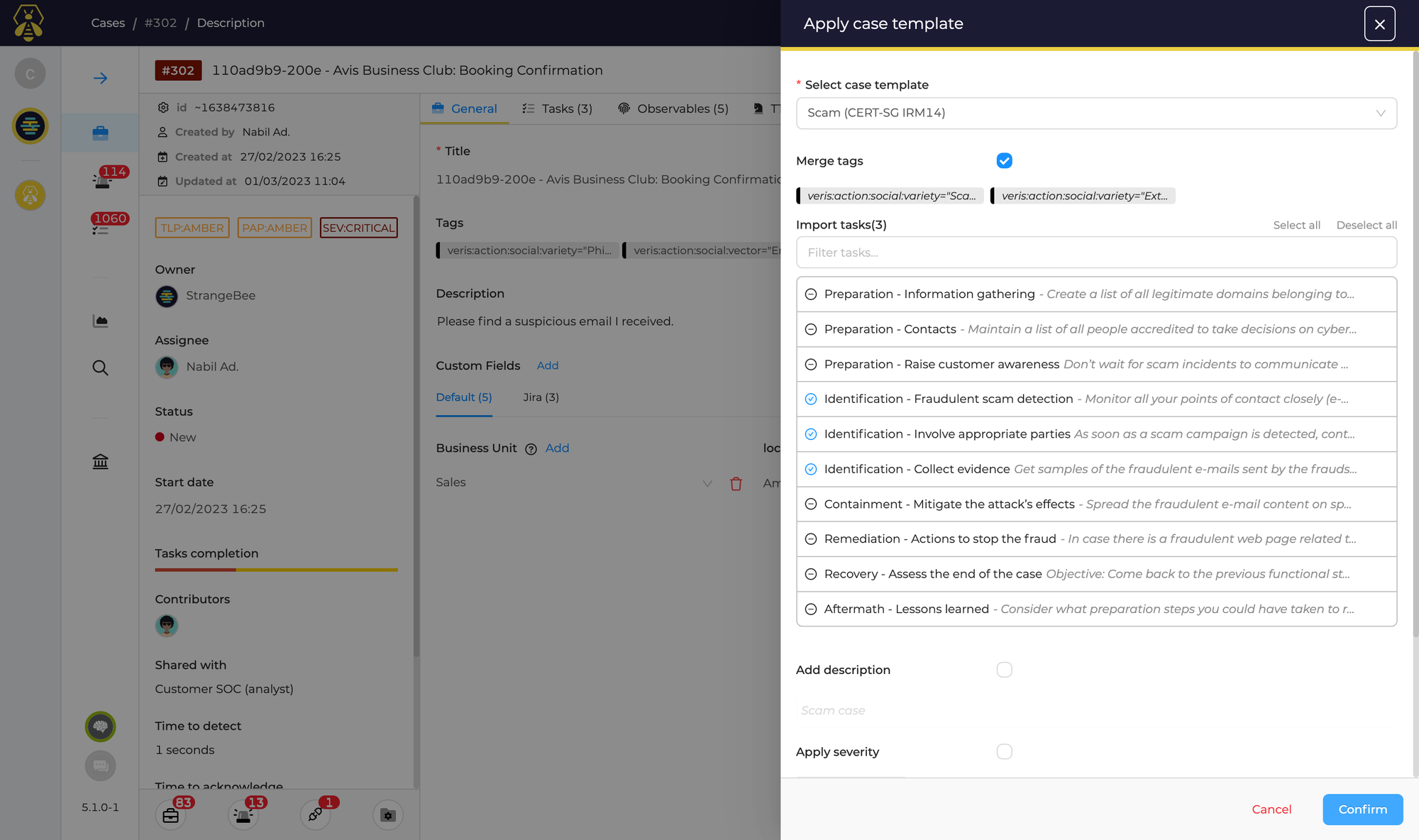 The new “Apply Case Template” feature allows you to improve the organization and efficiency of your investigations. During the lifecycle of a given case, you can now seamlessly enrich it with additional tasks from case templates stored in your library. With this feature, you no longer need to worry about building comprehensive case templates that include all possible tasks that could be required for a given context. Instead, you can adopt a building-block approach, creating simpler templates that can be combined as needed. This allows for greater flexibility and customization, as you can stack tasks from different, simpler templates to a single case as the investigation progresses.